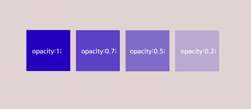 ▶ opacity는 요소의 투명도를 나타내며 기본 값은 1이며 0~1사이의 소수점 숫자로 조절 합니다.