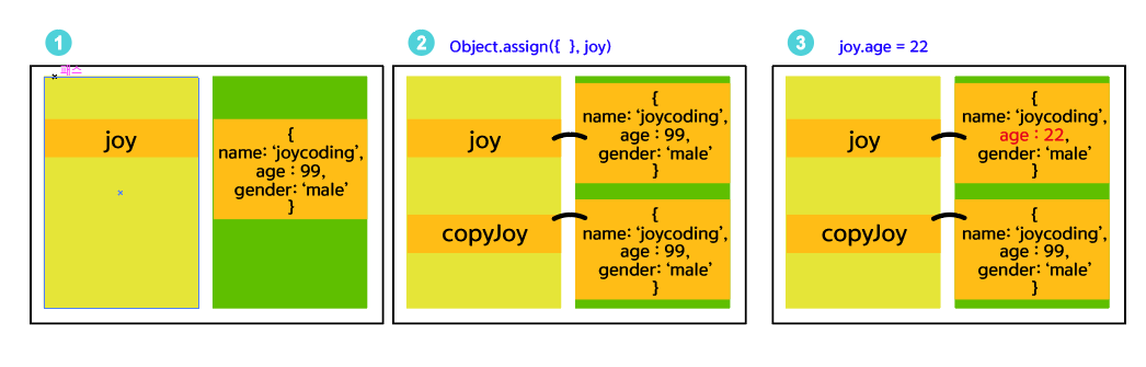 console.log(copyJoy) // {name: "joycoding", age: 22, gender: "male"}
