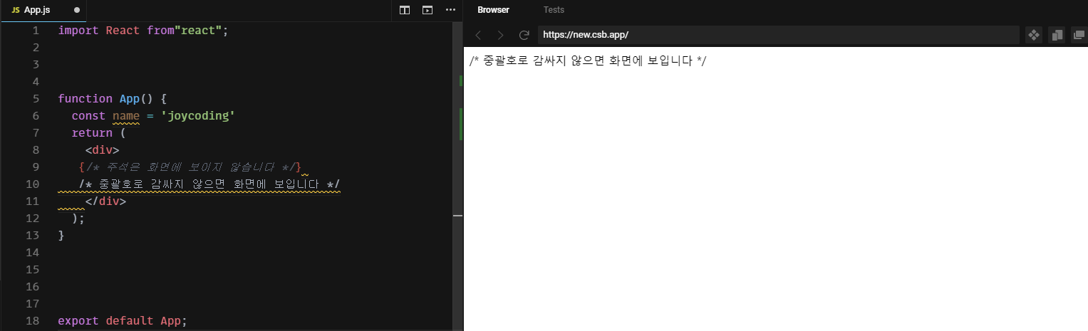 JSX 주석표시는 {*주석은 이렇게 씁니다*}