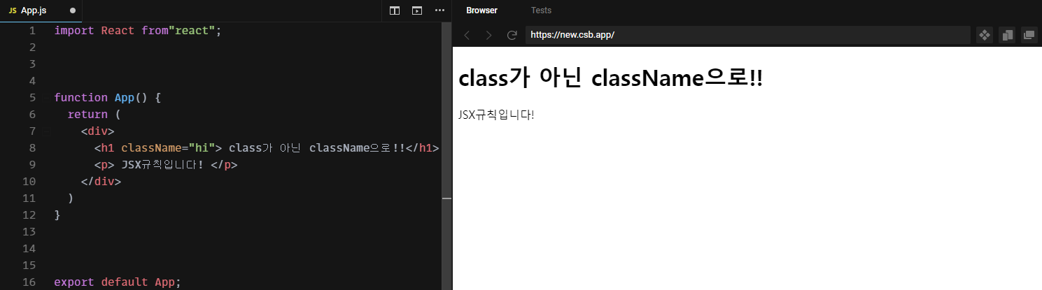 HTML 코드를 작성할 때는 태그를 닫지 않아도 문제없이 작동하지만 JSX는 태그가 항상 닫혀 있어야 합니다.
