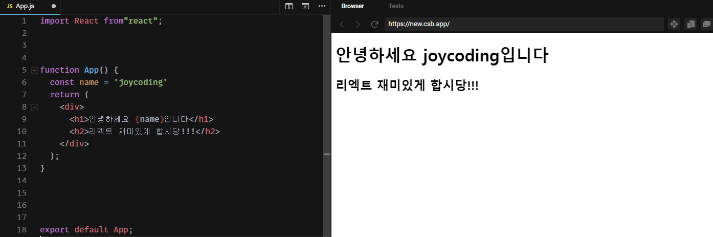 사용방법은 JSX내부에 { }로 감싸주면 됩니다.