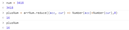 const plusNum = arrNum.reduce((acc, cur)=> Number(acc)+Number(cur),0)
