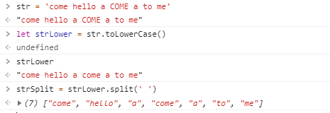let strSplit = strLower.split(' ') // 띄어쓰기 기준으로 배열 만들기